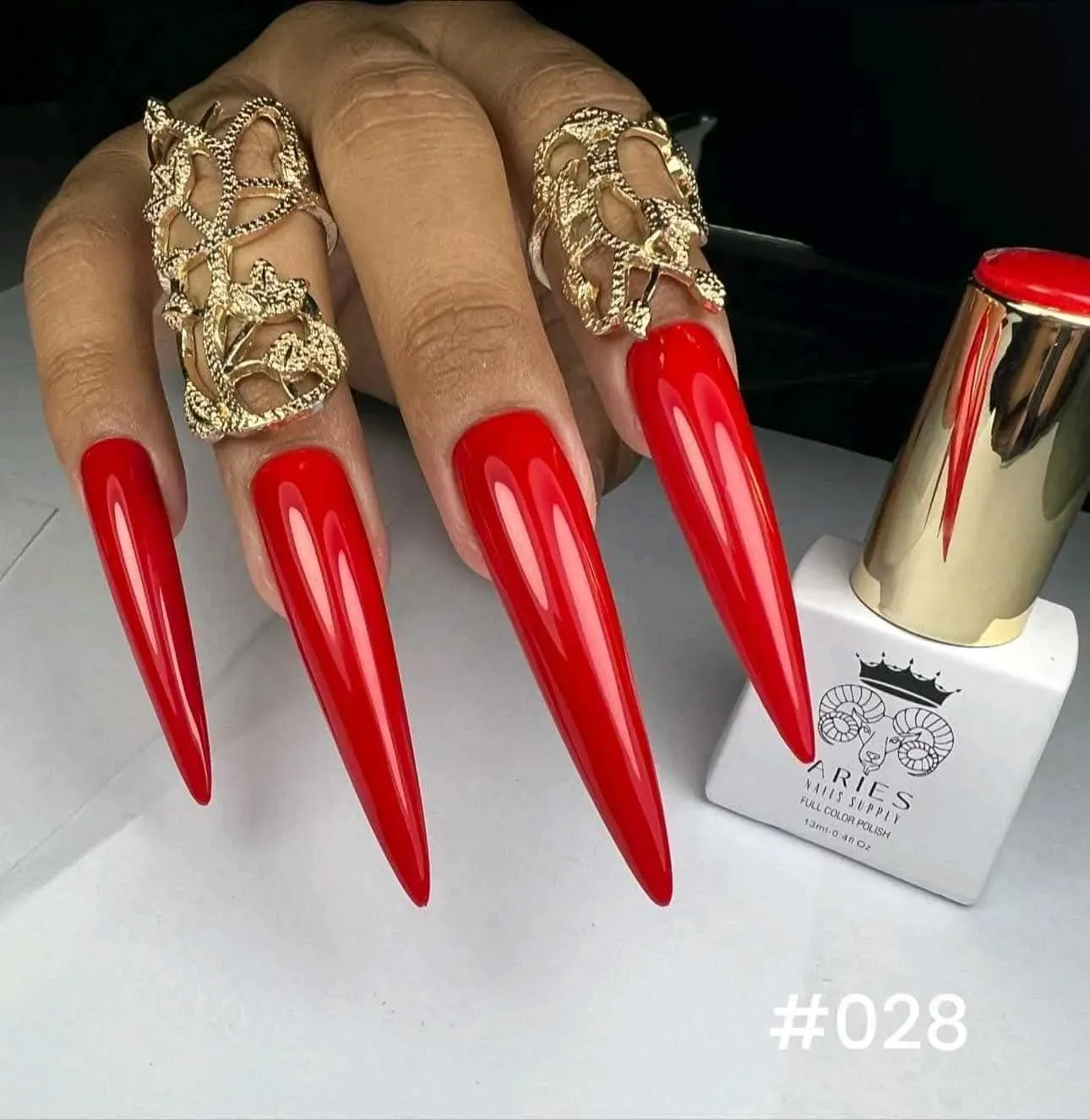Esmalte en gel de color rojo intenso, ideal para lucir unas uñas impecables y duraderas. El Gel Rojo #028 de Aries Nails es la elección perfecta para agregar un toque de elegancia a tu manicura. ¡Consigue un acabado profesional en casa con este esmalte de larga duración!