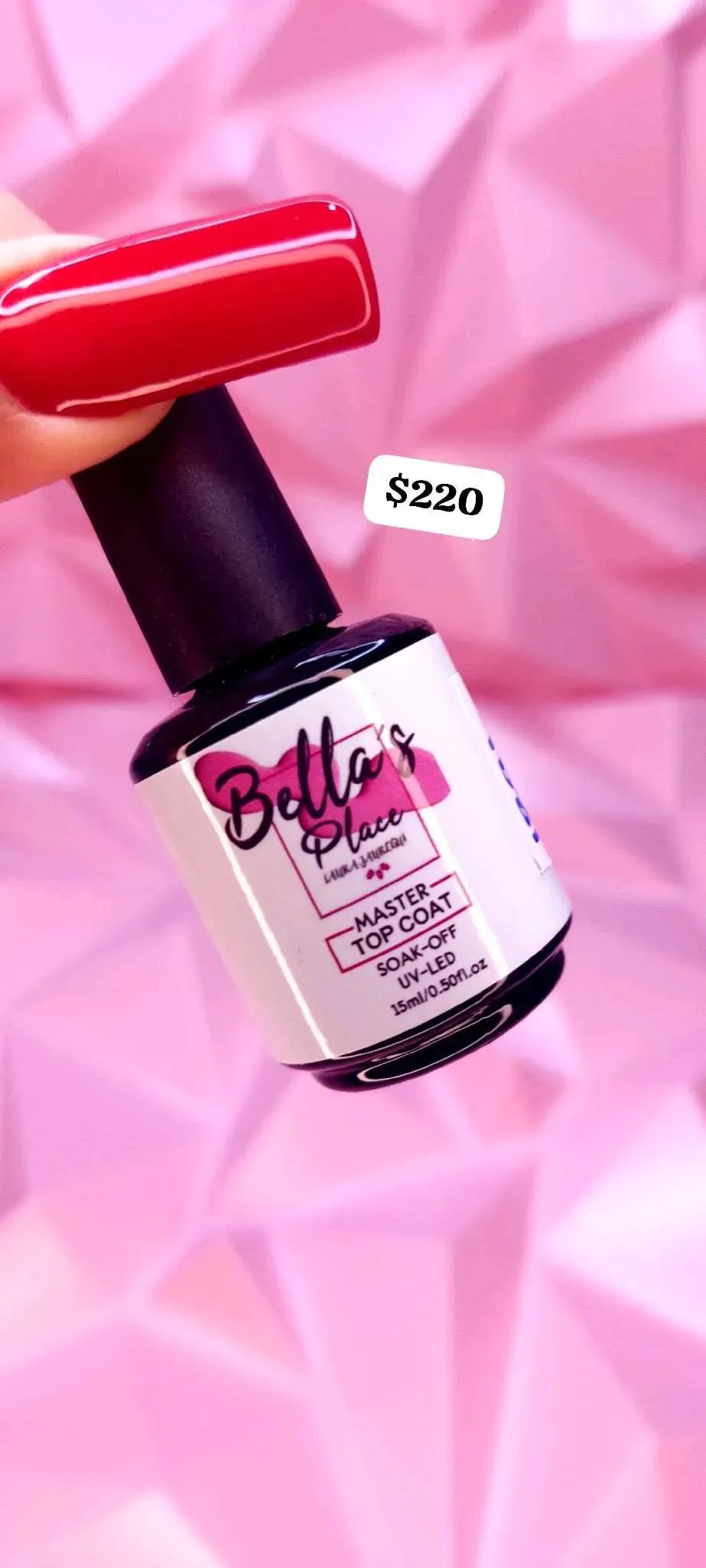 Dale a tus uñas un acabado impecable con el Top Coat Manster Bella's Place. Este Top de uñas te brinda un brillo espectacular que realza tu manicura, agregando un toque de belleza a tus manos. ¡Presume de unas uñas perfectas con este producto de alta calidad! 😍😘